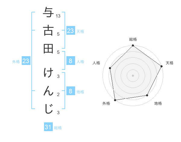 与古田 けんじさんの外格は23画の5点!