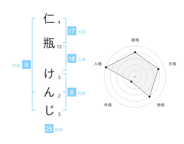 仁瓶 けんじさんの総格は25画の4点!
