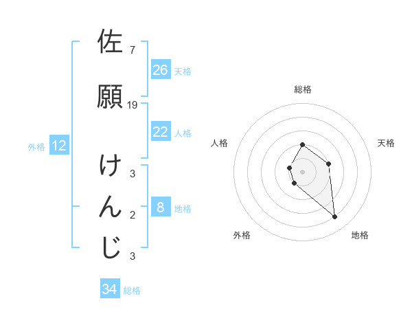 佐願 けんじさんを姓名の画数から五運を鑑定