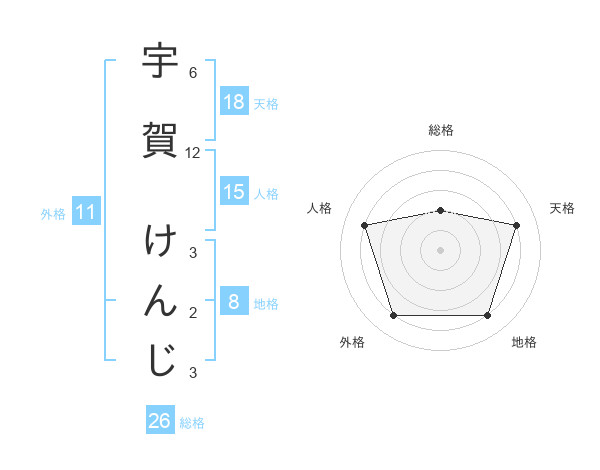 宇賀 けんじさんの地格は8画の4点!