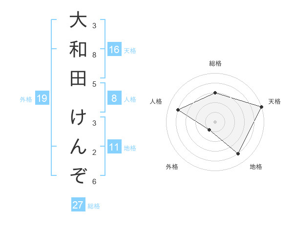 大和田 けんぞさんを姓名の画数から五運を鑑定