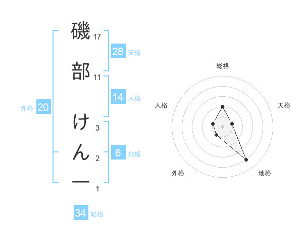 磯部 けん一さんを姓名の画数から五運を鑑定