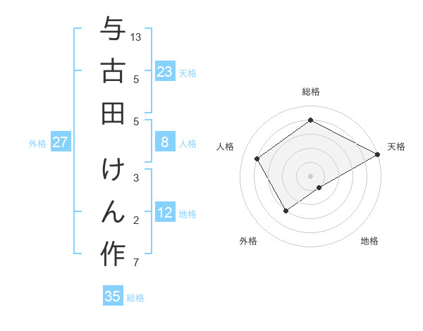 与古田 けん作さんを姓名の画数から五運を鑑定