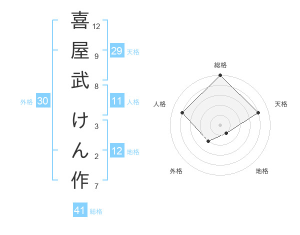 喜屋武 けん作さんを姓名の画数から五運を鑑定