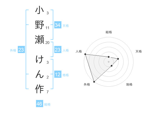 小野瀬 けん作さんを姓名の画数から五運を鑑定