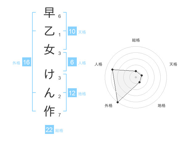 早乙女 けん作さんの外格は16画の5点!