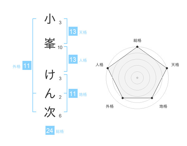 小峯 けん次さんの天格は13画の5点!