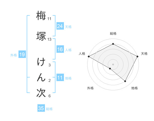 梅塚 けん次さんの天格は24画の5点!