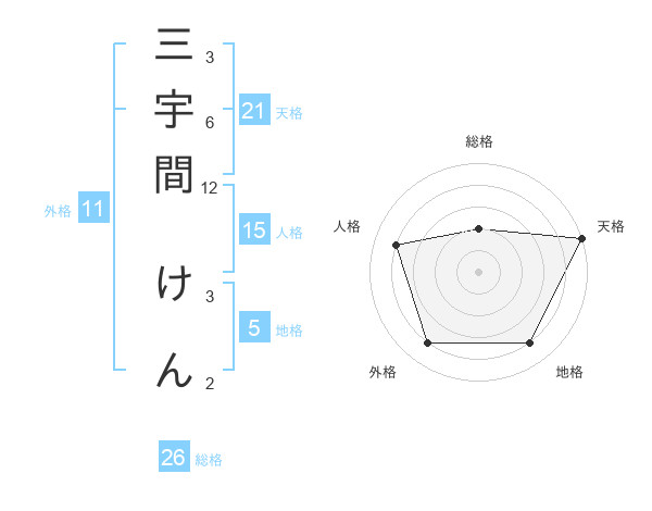 三宇間 けんさんを姓名の画数から五運を鑑定