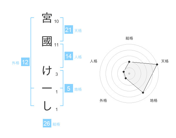 宮國 けーしさんを姓名の画数から五運を鑑定