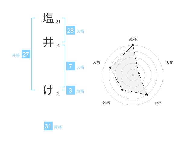 塩井 けさんの総格は31画の5点!