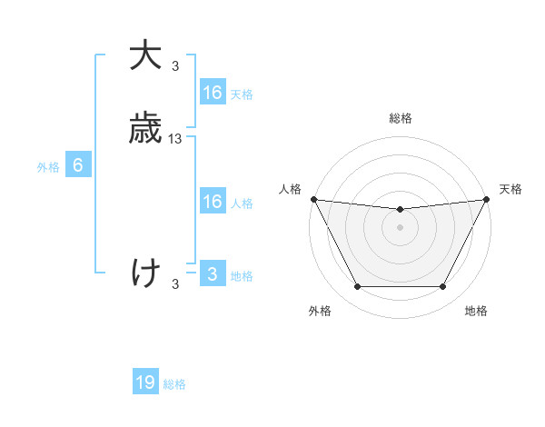 大歳 けさんの天格は16画の5点!