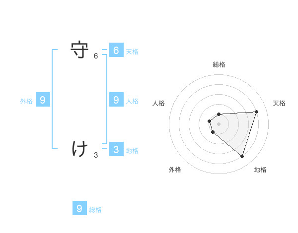 守 けさんの総格は9画の1点!