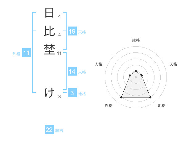 日比埜 けさんの外格は11画の4点!