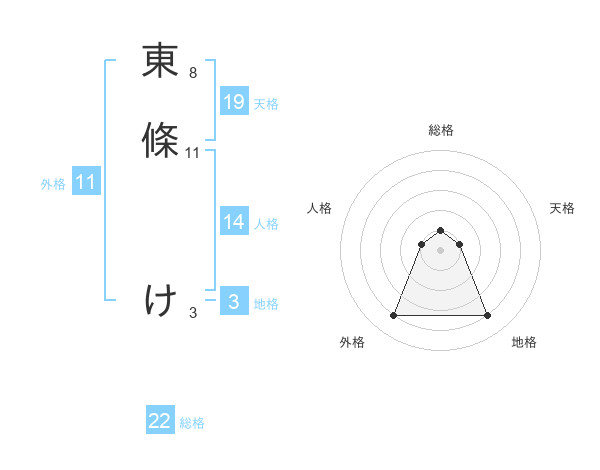 東條 けさんの外格は11画の4点!