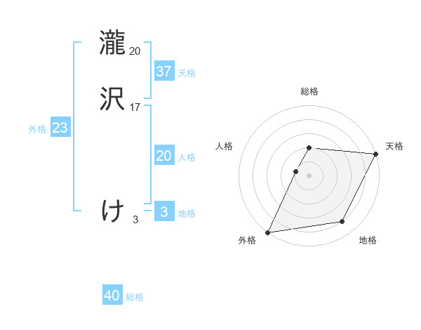 瀧沢 けさんの天格は37画の5点!