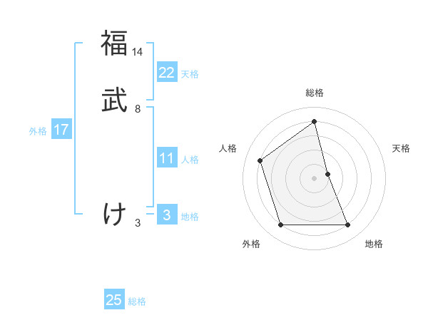 福武 けさんの外格は17画の4点!