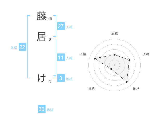 藤居 けさんの天格は27画の3点!