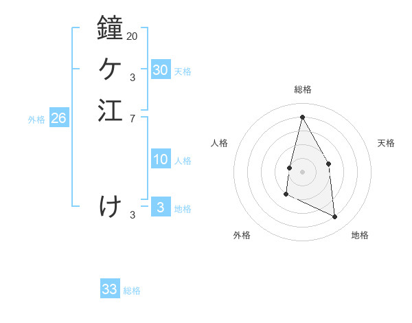鐘ケ江 けさんを姓名の画数から五運を鑑定
