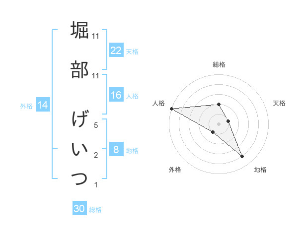 堀部 げいつさんを姓名の画数から五運を鑑定