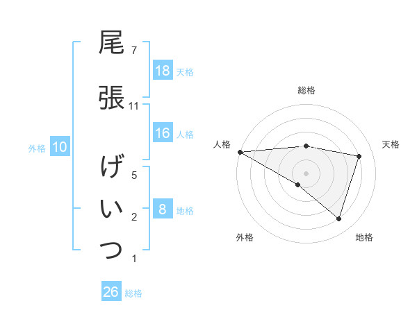 尾張 げいつさんを姓名の画数から五運を鑑定