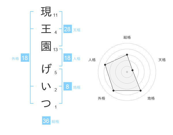 現王園 げいつさんを姓名の画数から五運を鑑定