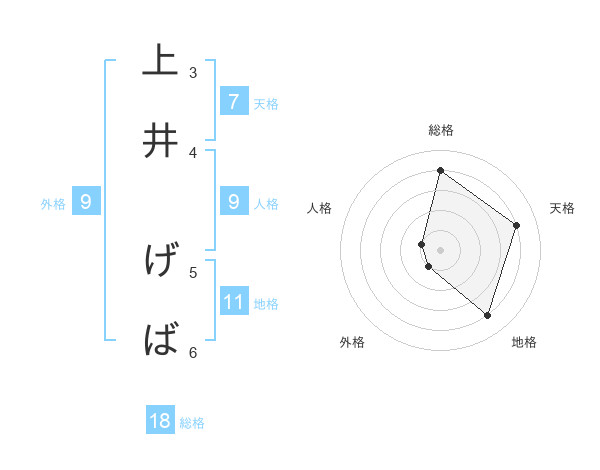 上井 げばさんの総格は18画の4点!