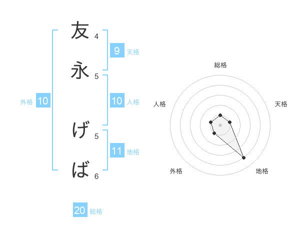 友永 げばさんの総格は20画の1点!