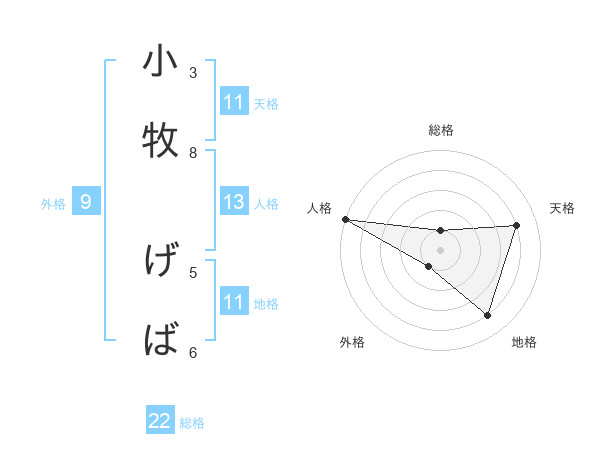 小牧 げばさんの総格は22画の1点!