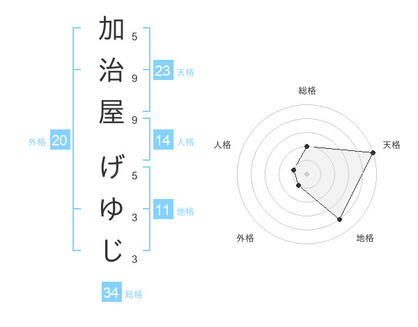 加治屋 げゆじさんの天格は23画の5点!