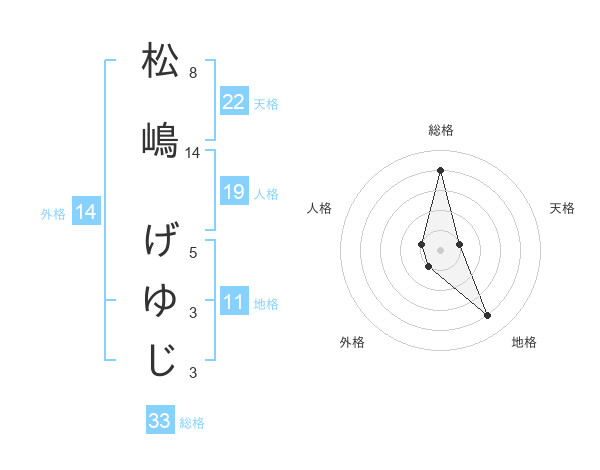 松嶋 げゆじさんを姓名の画数から五運を鑑定