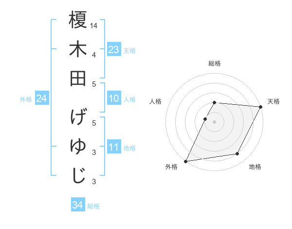 榎木田 げゆじさんの天格は23画の5点