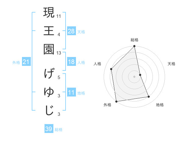 現王園 げゆじさんを姓名の画数から五運を鑑定