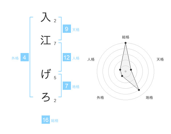 入江 げろさんの総格は16画の5点!