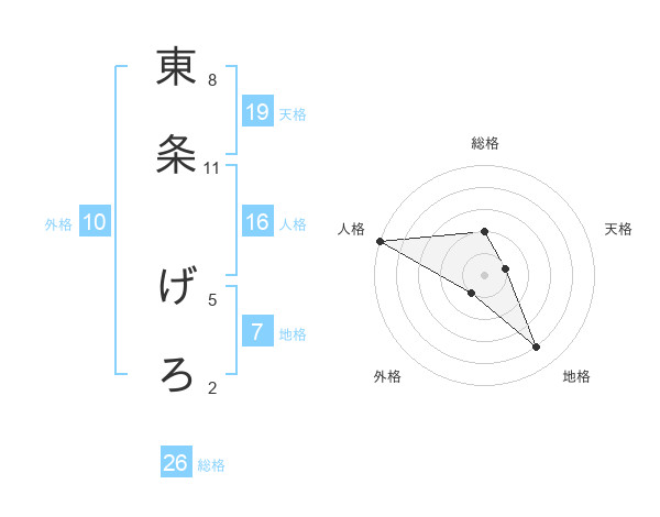 東条 げろさんの総格は26画の2点!