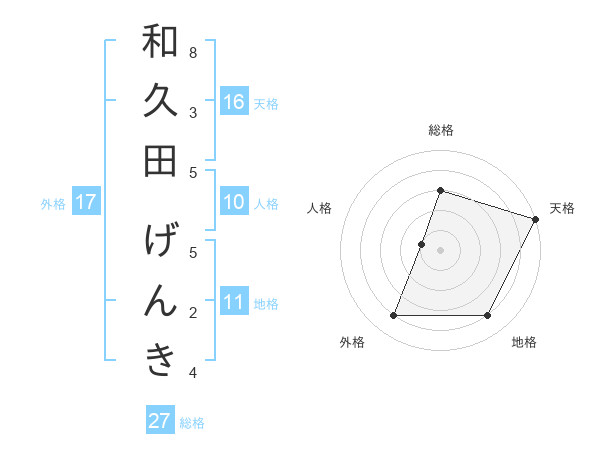 和久田 げんきさんを姓名の画数から五運を鑑定