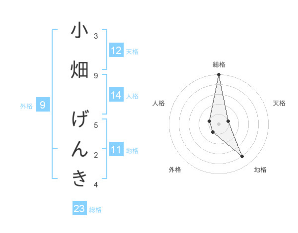 小畑 げんきさんを姓名の画数から五運を鑑定