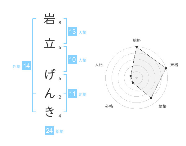 岩立 げんきさんを姓名の画数から五運を鑑定