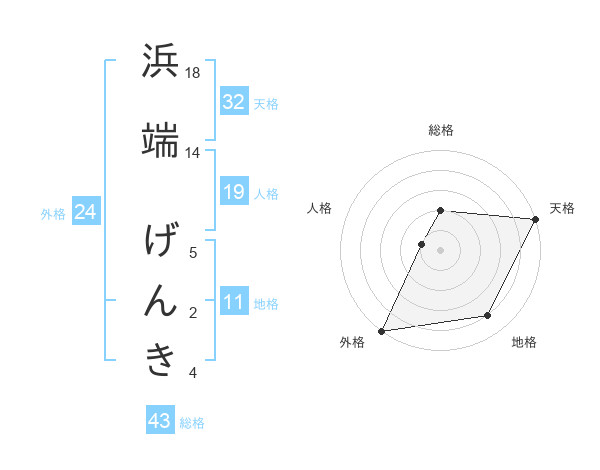 浜端 げんきさんの総格は43画の2点!