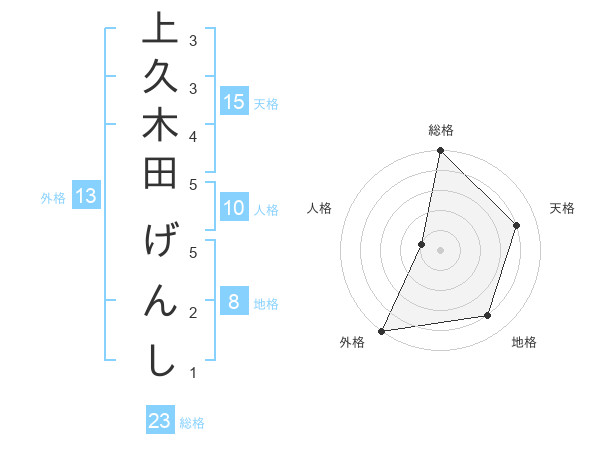 上久木田 げんしさんの外格は13画の5点!