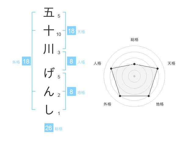 五十川 げんしさんを姓名の画数から五運を鑑定