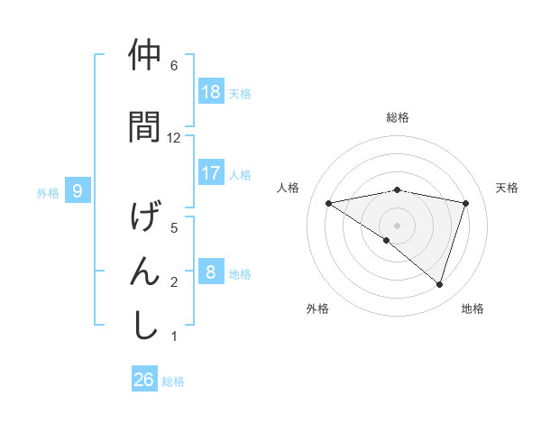 仲間 げんしさんの地格は8画の4点!