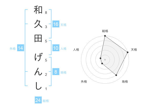 和久田 げんしさんを姓名の画数から五運を鑑定