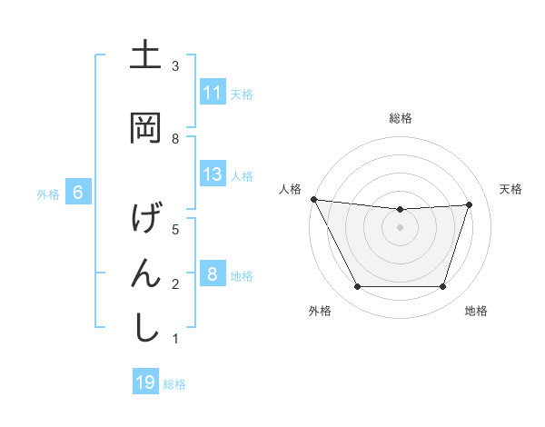 土岡 げんしさんを姓名の画数から五運を鑑定