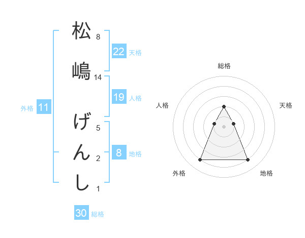 松嶋 げんしさんを姓名の画数から五運を鑑定