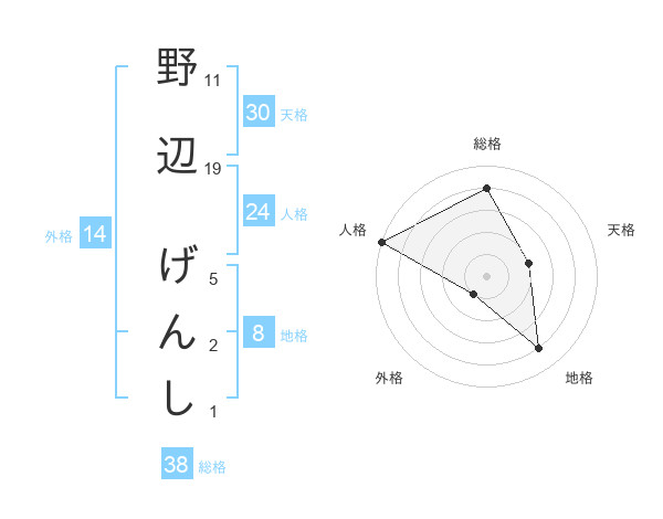 野辺 げんしさんの総格は38画の4点!