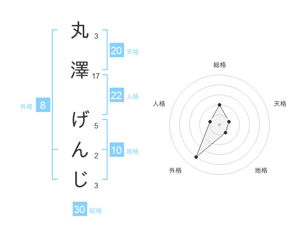丸澤 げんじさんの天格は20画の1点!
