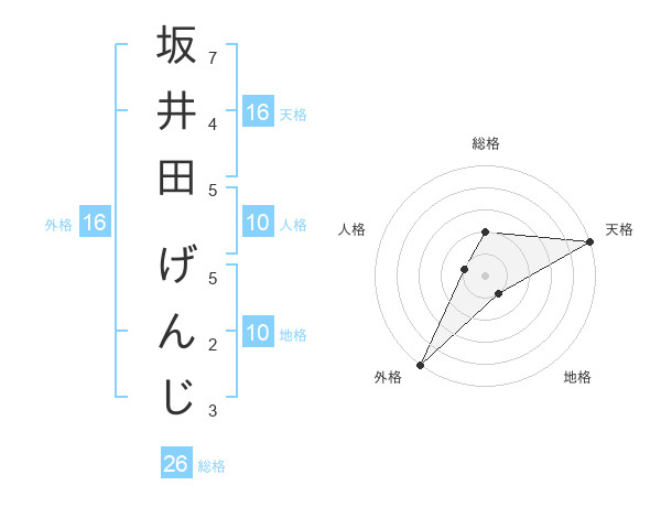 坂井田 げんじさんを姓名の画数から五運を鑑定