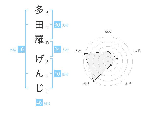 多田羅 げんじさんの外格は16画の5点!