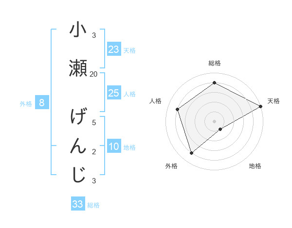 小瀬 げんじさんを姓名の画数から五運を鑑定